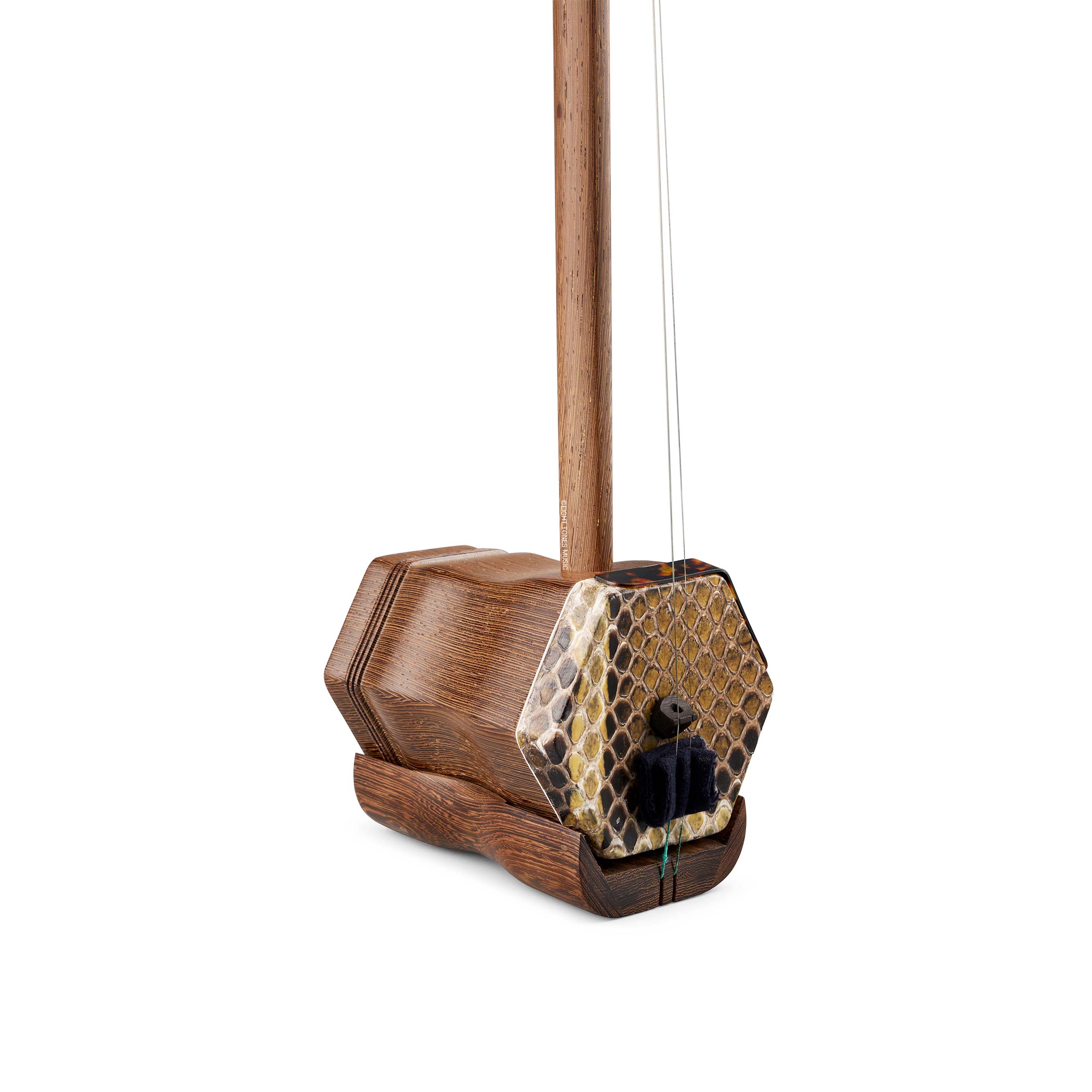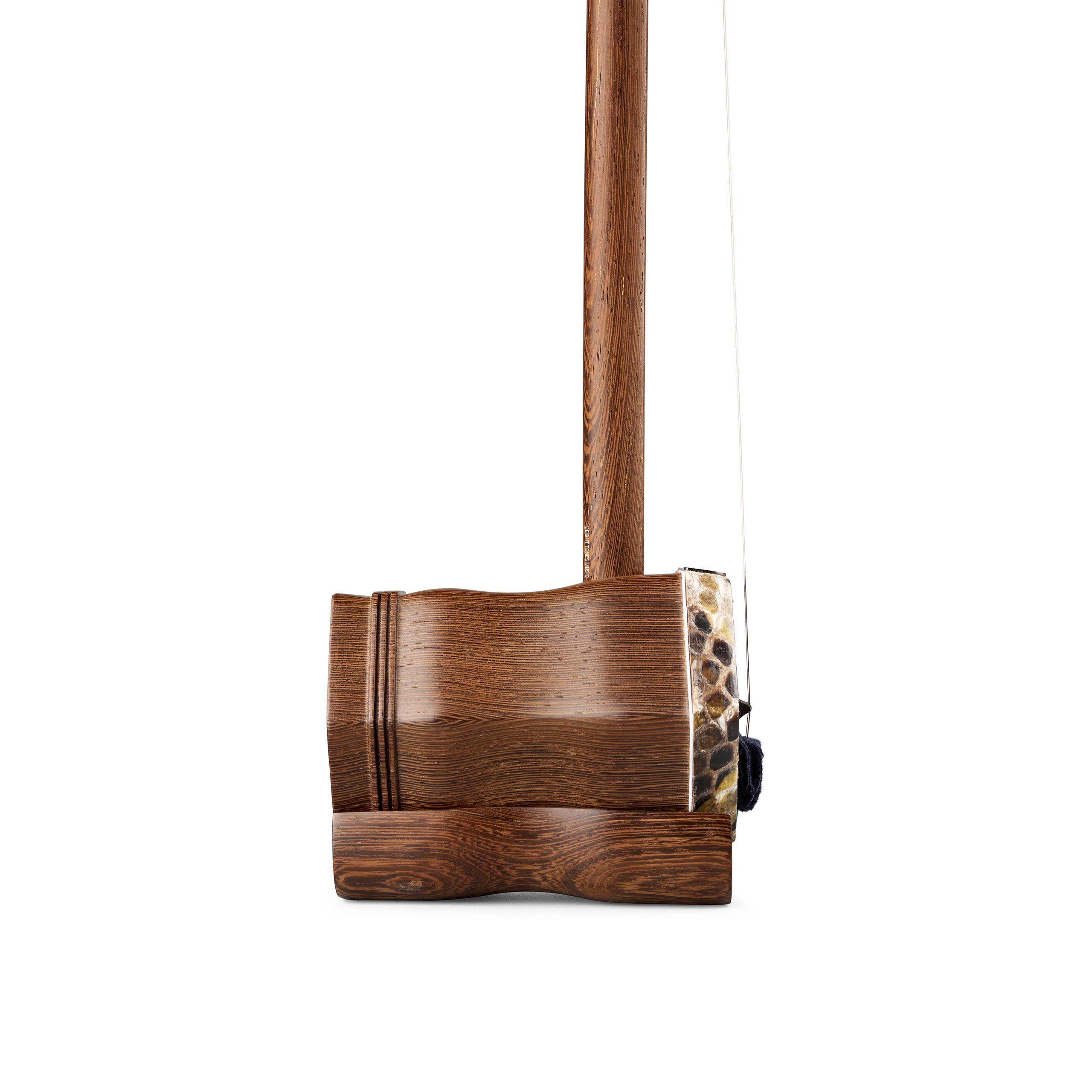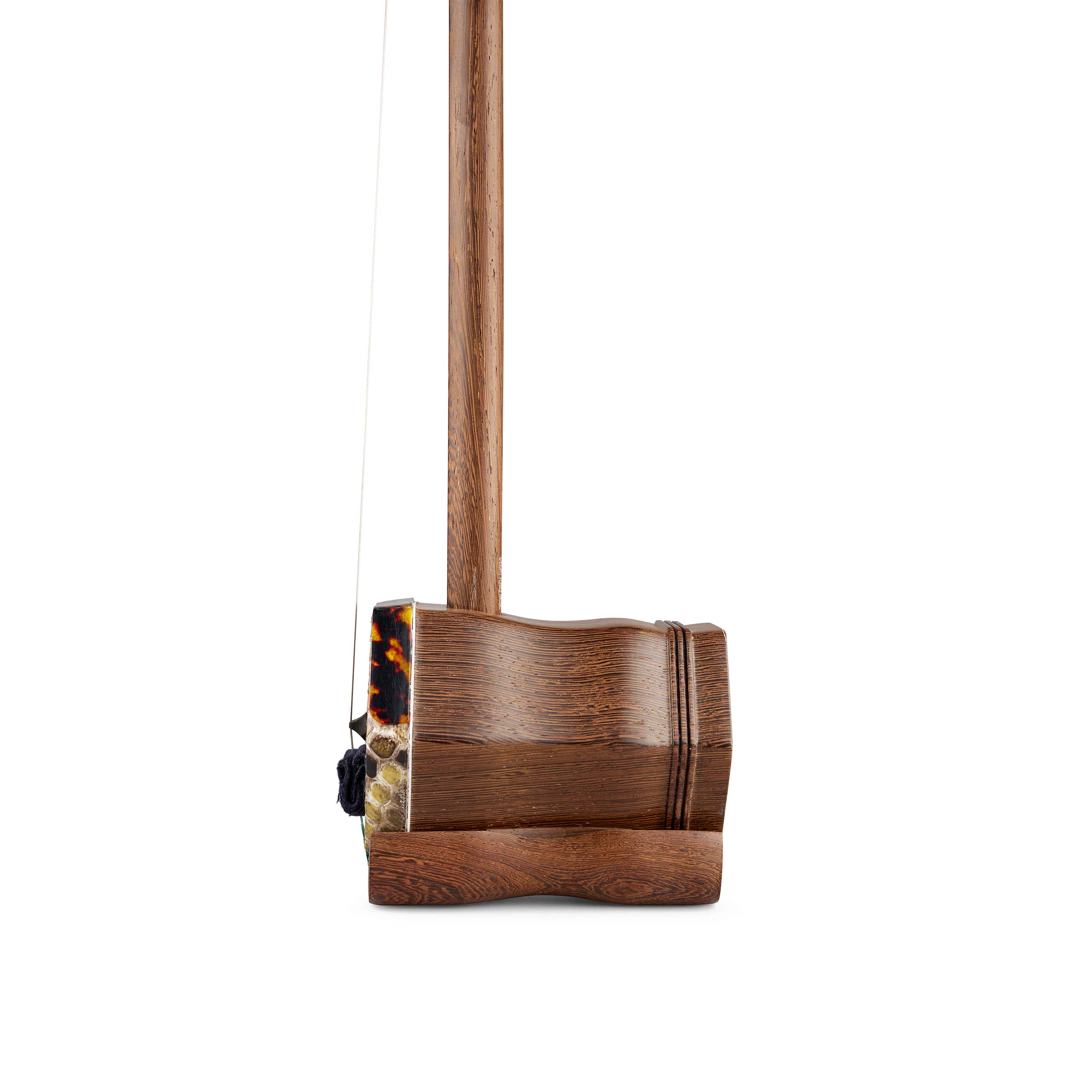 The key to a sensitive and good sounding Erhu lies in the resonating skin of the sound box. You will find the skin is stretched to a uniform tension across the sound box and is fitted by hand. When you gently press the skin with your fingers, you will find that it is firm to touch. This ensures that the membrane will resonate the sound box to its maximum potential so as to give you a full and deeper sound.