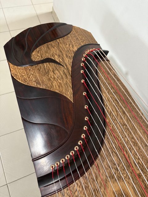 Fell in love with the deep tones of their Mujiuchen Guzhengs and eventually bought this beautiful ‘Celestial Crane’ Rose Sandalwood Guzheng.