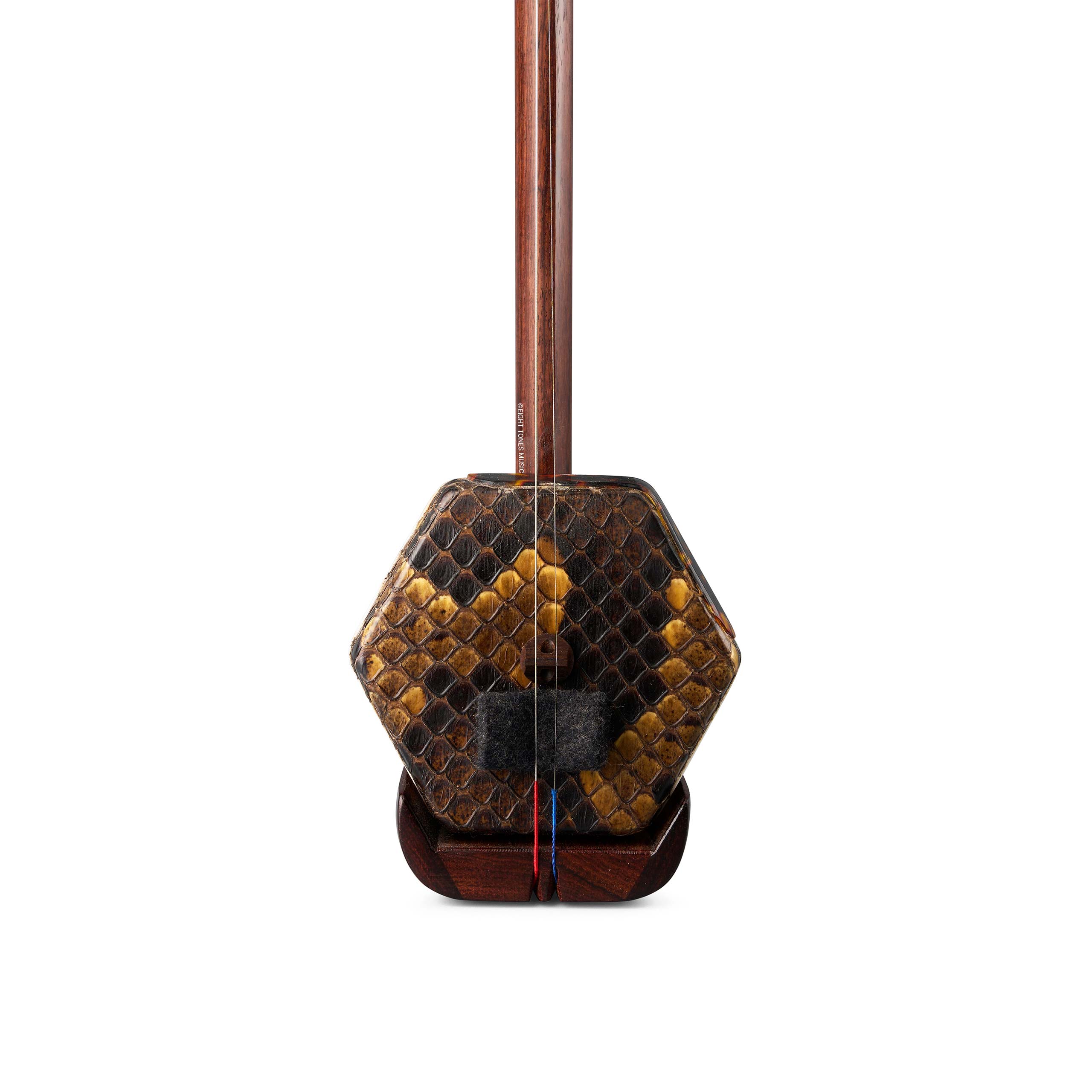 The key to a sensitive and good sounding Erhu lies in the resonating skin of the sound box. Yun Nan skin is a special and extremely rare breed of skin that can only be found in Yun Nan. The skin is extremely resilient and is very elastic. Erhus with this skin have extremely good projection, powerful yet sweet sound, and is louder than most erhus. The skin is also extremely durable and can last for many decades. If you want the ultimate best aged rosewood erhu possible, this is the perfect erhu for you.